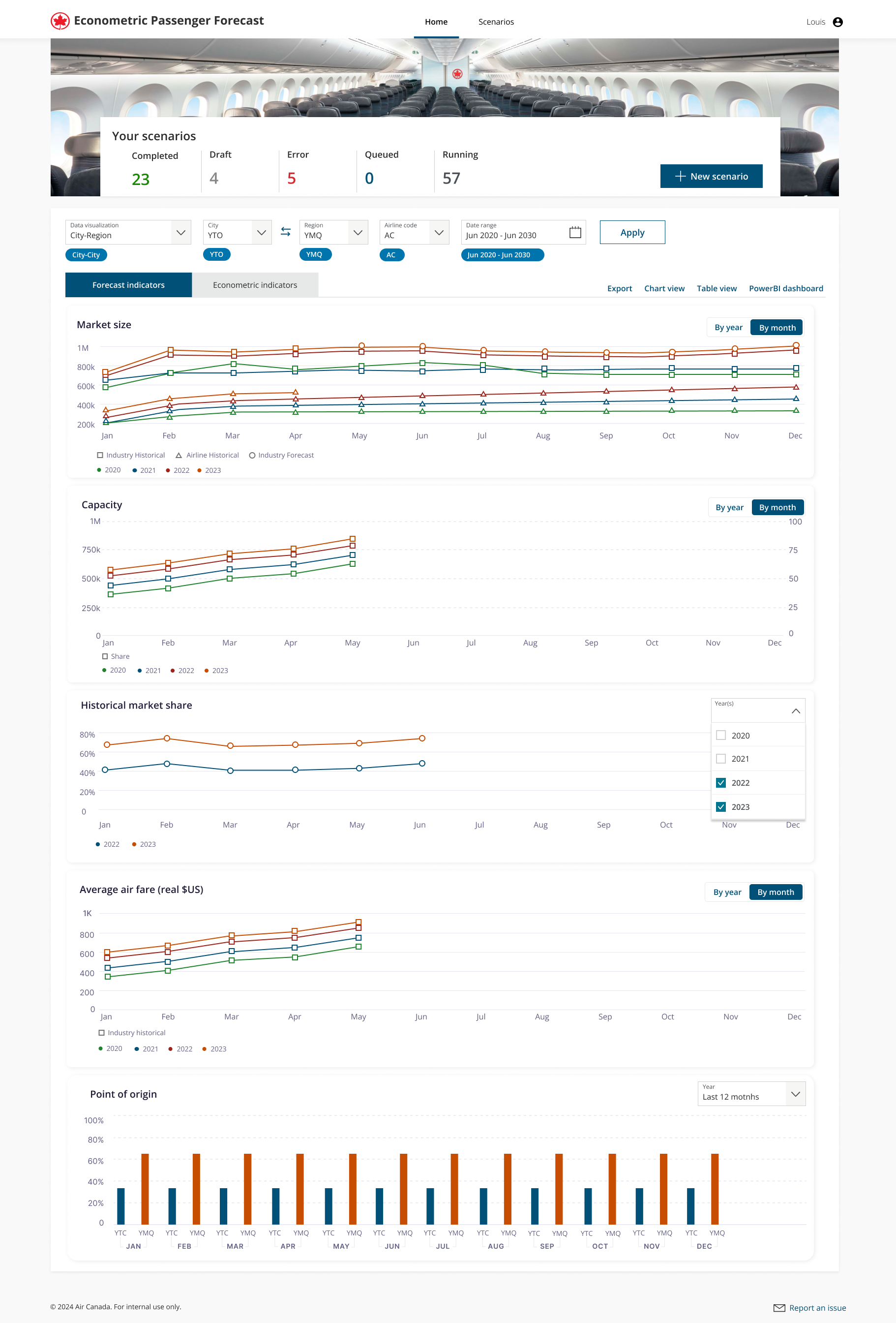 By combining data transparency, interactivity, and human-centered design, I helped Air Canada’s teams move from static forecasting models to a living, adaptive decision platform, one where users could visualize not just what might happen, but why.