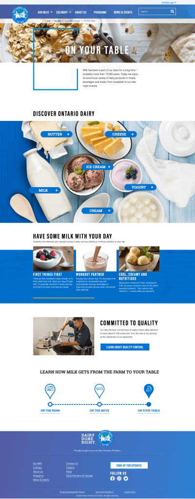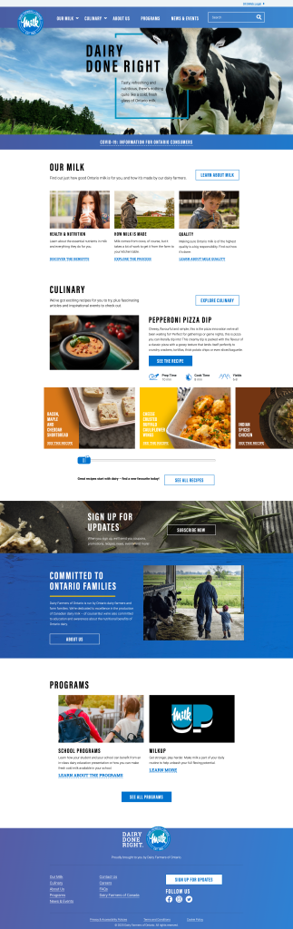 - Delivered a completely restructured and accessible website architecture aligned with Dairy Farmers of Ontario’s brand vision.