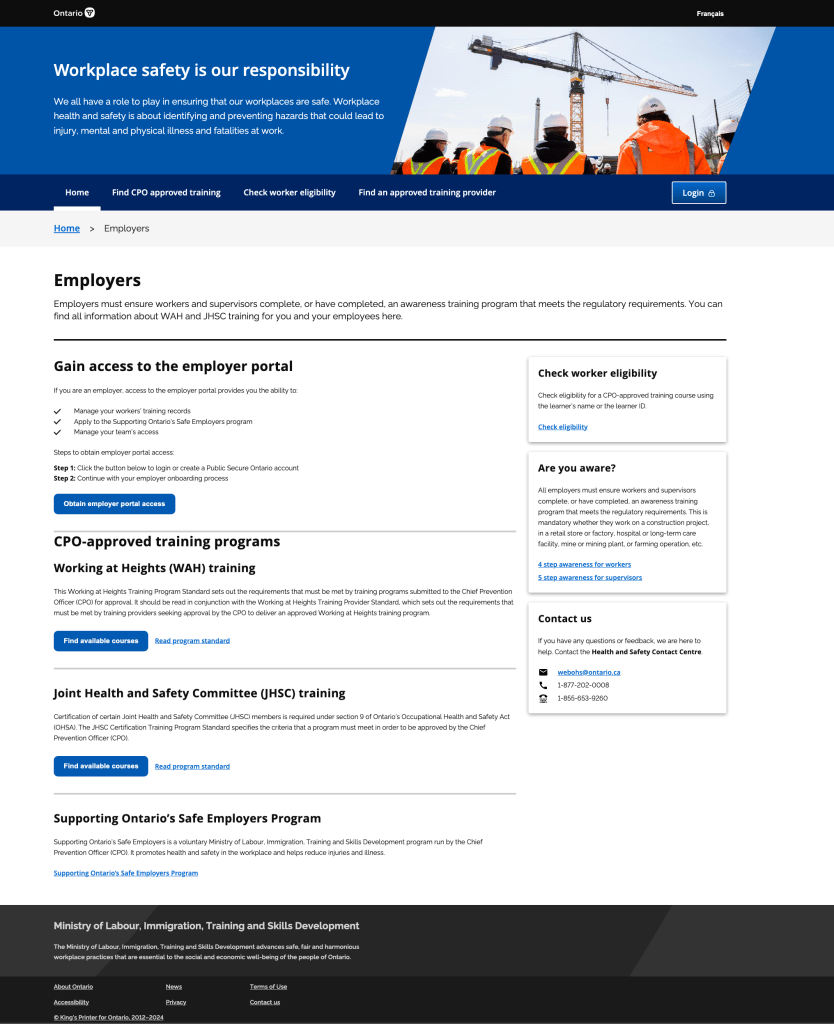 The Ontario Ministry of Labour needed to modernize its Health and Safety Training and Certification website, the province’s primary digital hub for employers, workers, and training providers.